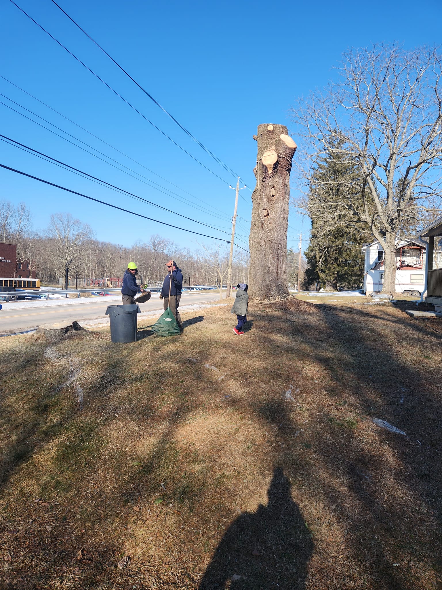 "We had a pine tree in our front yard that died. The crew showed up on time and got right to work. We are very happy with their work!"